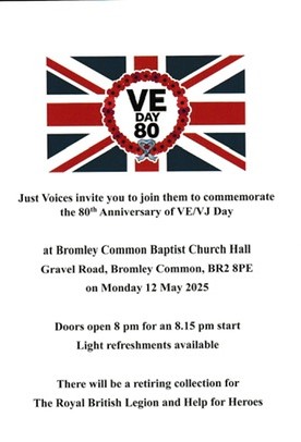 Latest Just Voices continue to entertain the local community, including Women’s Institutes, Clubs, Charity gigs Just Voices donated £400 raised from our VE/VJ Concert in May 2025